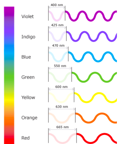 Light is made up of wavelengths. Photo receptors in the human eye are sensitive to short, medium and long wavelengths, which we perceive as a color: blue, green & red, plus all the colors in between.